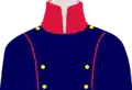 kołnierz karmazynowy z biała wypustką rabaty granatowe z białą wypustką wyłogi karmazynowe[2] mankiety karmazynowe[1] |