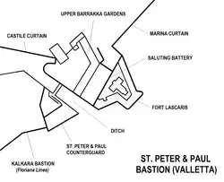 - ↑ Quentin Hughes: Malta: a guide to the fortification. Said International, 1993, s. 139. ISBN 978-99909-43-07-8. [dostęp 2013-02-21]. (ang.).