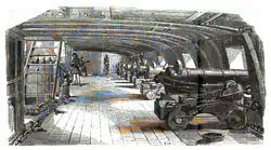 W XIX wieku pojawiły się też działa montowane w sposób obrotowy na pokładzie górnym okrętów. W latach 60./70. XIX wieku baterie burtowe zostały wyparte przez kazamaty, a następnie przez wieże artyleryjskie.
