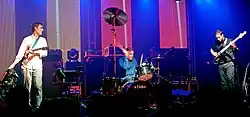 ![]() Battles w 2008 roku na Moers Festival. Od lewej: Ian Williams, John Stanier, Dave Konopka i Tyondai Braxton | |
