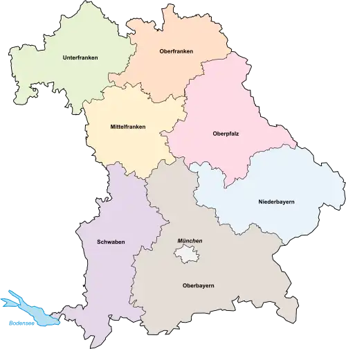 Bawaria podzielona jest na siedem rejencji (Regierungsbezirke):