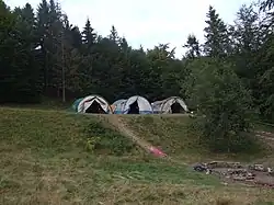 Baza namiotowa Polana Wały – studencka baza namiotowa w Beskidzie Wyspowym pod szczytem Krzystonowa. Znajduje się na położonej w środku największego kompleksu leśnego Beskidu Wyspowego Polanie Wały[1]. Polana ma dwa tarasy, na górnym, równym placu, tuż pod ścianą lasu, ustawiane są w sezonie letnim duże namioty. Baza oferuje noclegi zarówno grupom zorganizowanym (dla ok. 25 osób), jak i turystom indywidualnym. W namiotach są materace i śpiwory, możliwość również wykorzystania własnego śpiwora. Można także rozbić własne namioty. Jak wszystkie tego typu obiekty, baza oferuje bardzo tanie noclegi przy minimum wygód. Można otrzymać ciepłą herbatę, są stoły, miejsce do zapalenia ogniska, turystyczny prysznic (woda dostarczana rurą z potoku), tradycyjna ubikacja. Jest turystyczna kuchnia i możliwość przygotowania własnego posiłku. Jest też boisko do siatkówki, huśtawka[2][3]. Na pobliskich polanach, szczególnie na polanie Stumorgi na Mogielicy nieprzebrana ilość czarnych borówek.