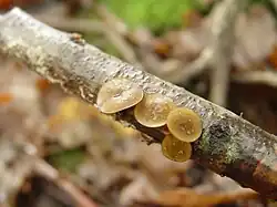 Nadrzewny grzyb saprotroficzny. Występuje na opadłych gałązkach drzew liściastych[3], zwłaszcza dębów[4].