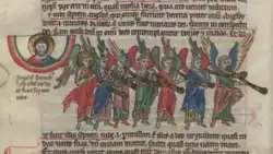 Długie trąby tubicinis procedentibus używane przez wojska słowiańskie wzmiankował Thietmar przy opisie bitwy nad Tongerzą. Wincenty Kadłubek opisując widowisko, które odbyło się w Krakowie w 1194, wzmiankuje piszczałki fistula oraz trąby tuba[10]. Te długie, wąskie, o lekko konicznej menzurze, drewniane tuby są bezpośrednim przodkiem bazun, trombit oraz ligawek[9]. Drewniane podłużne trąby występują również w polskiej ikonografii późnego średniowiecza[17], renesansu – kiedy wyraźnie zarysowywać się zaczyna podział instrumentarium na profesjonalne i ludowe[18], i później[19].