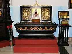 Pierwotnie pochowany na cmentarzu prawosławnym w Teratynie. Jesienią 1968 jego szczątki zostały przewiezione do Warszawy i pochowane na prawosławnym cmentarzu wolskim. Na początku 2003 roku dokonano ekshumacji relikwii świętego i przeniesiono je do prawosławnej cerkwi pw. św. Jana Klimaka w Warszawie.