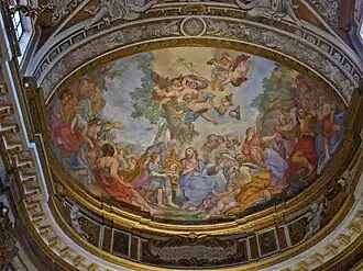 Wnętrze kopuły wraz z pendentywami ozdobił freskami Pasquale Marini w XVII wieku. Centralny fresk kopuły przedstawia Wniebowzięcie Maryi[2].
