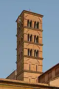 Wysoka romańska dzwonnica znajduje się po lewej stronie kościoła, tuż przy ołtarzu głównym[2]. Została zbudowana z cegły, ma pięć kondygnacji powyżej linii dachu, oddzielonych od siebie wystającymi gzymsami[2].