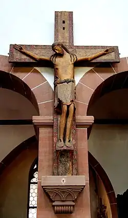 - nadnaturalnej wielkości Aschaffenburger Triumphkreuz (Aschaffenburski krzyż triumfalny) z X wieku. Krzyż ten zawieszony jest na środku północnej części nawy głównej,