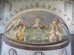 Konchę apsydy zdobi fresk przedstawiający Chrystusa w otoczeniu świętych autorstwa Taddeo Zuccari z 1560 roku. Freski w łuku apsydalnym wykonał Eugenio Cisterna w latach 1919–1920[3].