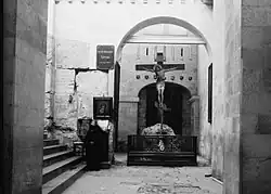 - 1 2 Custodia Terra Sanctae. Sanctuary Holy Sepulchre: Parvis and entry. Gerusalemme San Salvatore Convento Francescano St. Saviour’s Monastery. [dostęp 2014-01-20]. [zarchiwizowane z tego adresu (2014-02-19)]. (ang.).