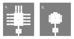 A: 1 – westybul; 2 – komora grobowa; 3 – koch (loculus)