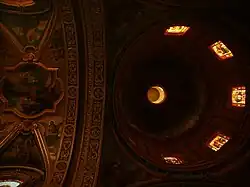 Wnętrze świątyni udekorowane jest marmurem, okna zawierają witraże[4].