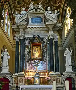 W ołtarzu głównym znajduje się cudowny obraz Najświętszej Maryi Panny namalowany, jak głosi legenda, przez św. Łukasza. Na obrazie znajduje się napis „Tu honorificenta populi nostri”. Obraz pierwotnie znajdował się w Sancta Sanctorum, przeniesiony został przez papieża Grzegorza IX. Za ołtarzem znajduje się chór zakonny ozdobiony freskami Pinturicchiego.