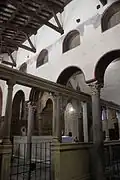 Kościół ma układ bazylikowy, z nawą główną i dwiema nawami bocznymi. Na końcach wszystkich trzech naw są apsydy wewnętrzne. Wzdłuż lewej nawy znajdują się trzy zewnętrzne kaplice[2].