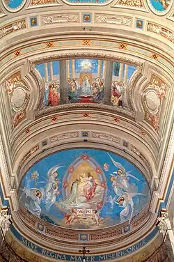 Wnętrze kościoła zdobią freski pędzla Arquímedes Vitali.[4] Na sklepieniu nawy głównej znajdują się malowidła przedstawiające ważne momenty w życiu Maryi.[4]