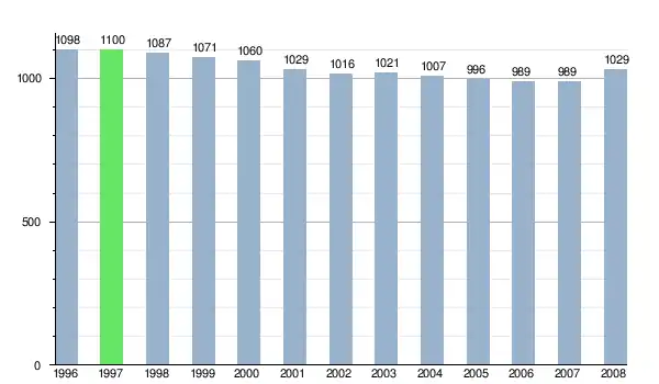 Według danych z dnia 31 grudnia 2012 roku, wieś zamieszkiwało 979 osób, w tym 485 kobiet i 494 mężczyzn[6].