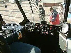 | Beijnes 3G #808 (dawniej #624) na ulicy 28 Czerwca 1956 roku (2005) | Wnętrze | Pulpit motorniczego | Beijnes 3G #809 na ulicy Franklina Roosevelta (2006) |