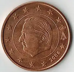 - ↑ Mise-à-jour des faces nationales des pièces en euros destinées à la circulation: Royaume de Belgique. In: Journal officiel de l’Union européenne, 2007/C 302/08, 14 décembre 2007.