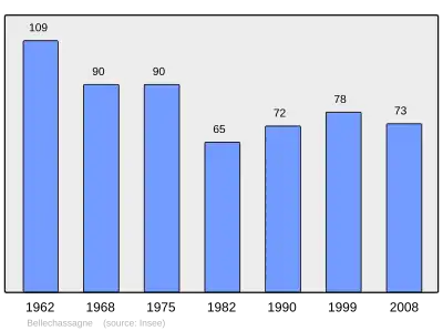 Według danych na rok 1990 gminę zamieszkiwały 72 osoby, a gęstość zaludnienia wynosiła 5 osób/km² (wśród 747 gmin Limousin Bellechassagne plasuje się na 526. miejscu pod względem liczby ludności, natomiast pod względem powierzchni na miejscu 460.).