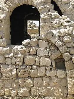 Zewnętrzny pierścień murów zamkowych ma nieregularny kształt wielokąta o średnicy 100 (E-W) na 115 m (N-S). Główna brama wjazdowa znajdowała się na południu i była skierowana na wschód. Przez nią docierało się do wewnętrznego pierścienia murów o wymiarach 33 m (E-W) na 40 m (N-S). W centrum znajdował się budynek o trzech skrzydłach (N - W - S), którego dziedziniec zamykał mur (strona E) z bramą (1,7 m szerokości). Pozostałości kamiennych schodów znajdujących się po południowej stronie dziedzińca świadczą o istnieniu piętra. W późniejszym okresie dobudowano dwa pomieszczenia po wschodniej stronie dziedzińca tworząc czworoboczny zamknięty kompleks budynków. Wydaje się, iż część mieszkalna zamku znajdowała się na parterze. Tutaj także zachowały się pozostałości pras do tłoczenia oliwek oraz winogron.