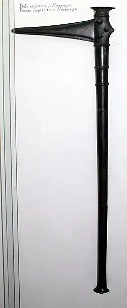 Berło sztyletowe było oznaką władzy, ale także narzędziem walki. Najczęściej wykonane było ze sztyletu z brązu osadzonego poprzecznie na drewnianym drzewcu. Rzadziej spotykane berła były całkowicie wykonane z brązu. Bardzo często drzewce berła było wzmacniane obręczami metalowymi.