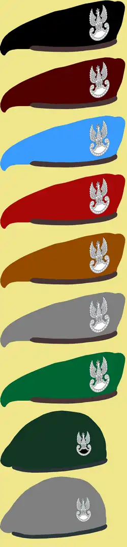 Żołnierze Sił Zbrojnych Rzeczypospolitej Polskiej obecnie noszą berety w kolorach[23][24][25][26]