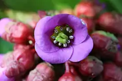 - Zebrane w gęste, szczytowe kwiatostany wierzchotkowate, rozwijające się przed pojawieniem się nowych liści w danym roku. Kwiaty są okazałe, osiągają do 3 cm średnicy. Działki kielicha w liczbie 5, połączone są nasadami. Płatki, których także jest 5 są wolne. Mają barwę białą, różową do czerwonej. Pręcików jest 10. Zalążnia w znacznej części dolna, powstaje z dwóch owocolistków, każdy z odrębną szyjką słupka. Zalążnia jest jednokomorowa z bardzo licznymi zalążkami osadzonymi brzeżnie[4][6].