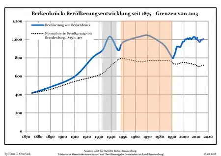 Wykres zmian populacji Berkenbrück od 1875 roku: