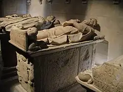 HIC EST CONDITUS VEREMUDUS JUNIOR, REX LEGIONIS, FILIUS ADEFONSIS REGIS. ISTE HABEBIT GUERRAM CUM COGNATO SUO REGE MAGNO FERNANDO, ET INTERFECTUS EST AB ILLO IN TAMARA PRAELIANDO. ERA MLXXV.