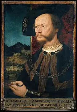 - Portret Johanna II, hrabiego Montfort i Rothenfels 1523, 30 x 22,5 cm, Narodowa Galeria Irlandii, Dublin