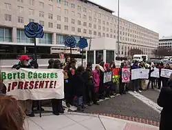 - ↑ Proteste nach Ermordung von Aktivistin Berta Cáceres in Honduras | amerika21 [online], amerika21.de [dostęp 2017-11-17] (niem.).