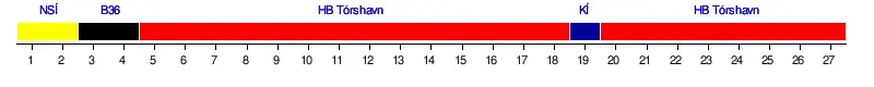 | HB Tórshavn | 4 | 3 | 2 | 2 | 1 | 1 | 1 | 1 | 1 | 1 | 1 | 1 | 1 | 1 | 1 | 1 | 1 | 1 | 2 | 1 | 1 | 1 | 1 | 1 | 1 | 1 | 1 |