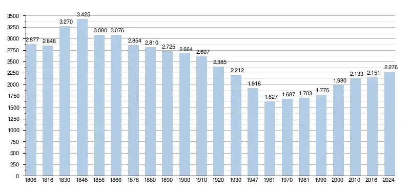 - Źródła: NIS, od 1806 do 1981= według spisu; od 1990 liczba ludności w dniu 1 stycznia