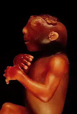 - Bezmózgowie całkowite (łac. anencephalia totalis) – jest wynikiem braku indukcji lub zniszczeniem odcinka płytki nerwowej, prowadzące do niewykształcenia się wszystkich trzech pierwotnych pęcherzyków mózgowych. Brak tyłomózgowia wyjaśnia niezdolność płodu do samodzielnego przeżycia. Nie wykształca się kostna pokrywa czaszki oraz nie wykształcają się zawiązki pęcherzyków wzrokowych – bezocze. Wada powstaje przed 3 tygodniem życia płodowego. Mogą tej wadzie towarzyszyć inne, np.: brak rdzenia, przepukliny oponowo – rdzeniowe; poza układem nerwowym: agenezja nadnerczy, przysadki, tarczycy, nerek, wady kończyn.