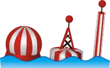 Bezpieczna woda – w systemie IALA znak ten stosuje się do wskazania, że woda wokoło jest żeglowna, w tym również do oznaczenia linii środka toru wodnego.