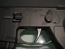 Zazwyczaj stosowany w mechanizmach spustowo-uderzeniowych broni strzeleckiej, po włączeniu uniemożliwiając jej przedwczesny lub przypadkowy wystrzał, powtórne załadowanie oraz chroniąc przed zanieczyszczeniem i uszkodzeniem[1].