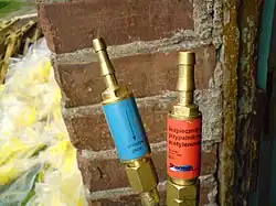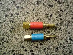 Bezpieczniki przypalnikowe maja króćce na węże oraz nakrętki na gwint palnika.