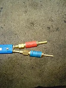 Bezpiecznik tlenowy ma gwint prawoskrętny 1/4, a acetylenowy lewoskrętny 3/8, charakterystyczny dla gazów palnych.