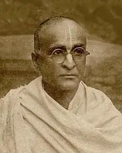 - W roku 1905 Siddhanta Saraswati przyjął święcenia od Gaurakiśora dasa Babadźiego, który chociaż był szanowanym świętym i wielbicielem Kryszny, był analfabetą.