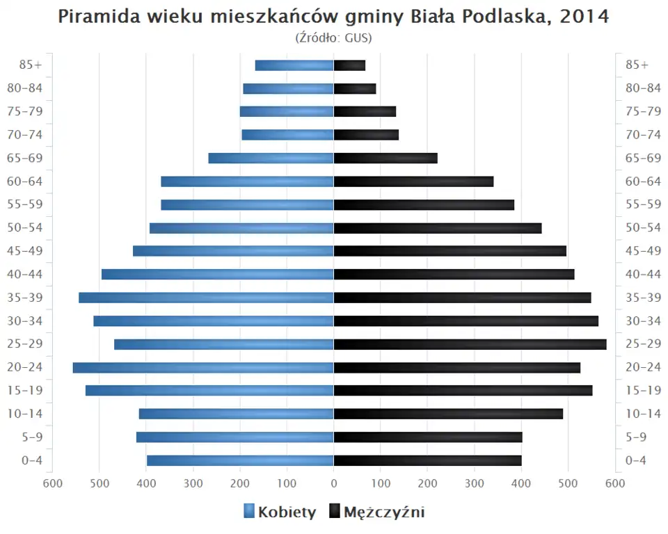 • Piramida wieku mieszkańców gminy Biała Podlaska w 2014 roku[1].