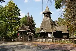 - Drewniany, kryty gontem, kościółek Przemienienia Pańskiego, wybudowany w latach 1917–1918[7], wraz z ogrodzeniem i dzwonnicą, w stylu podhalańskim. Został zaprojektowany przez Mateusza Galasa, a jego architektura nawiązuje do modnego wówczas stylu zakopiańskiego. W 1993 r. kościół wraz z drewnianą dzwonnicą i drewnianym ogrodzeniem z bramką, jako zespół, został wpisany do rejestru zabytków nieruchomych (nr rej.: A.401/1-3 z 14.04.1993)[8].