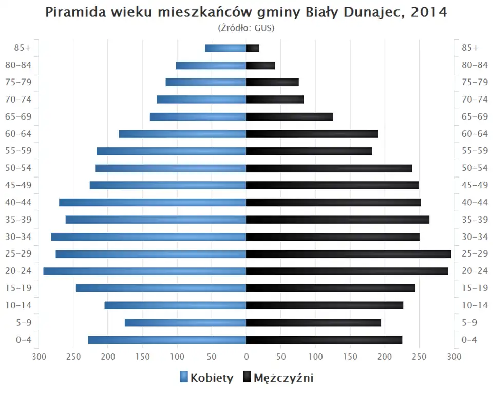 - Piramida wieku mieszkańców gminy Biały Dunajec w 2014 roku[14].