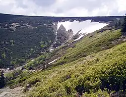 z Karpacza na Śnieżkę. Szlak przebiega dolnym odcinkiem Białego Jaru.