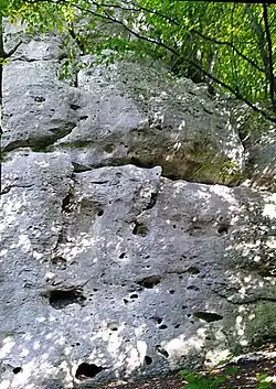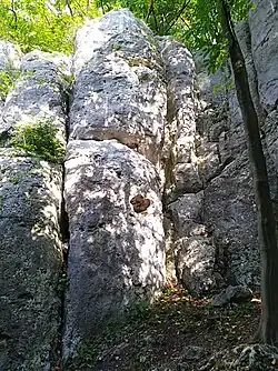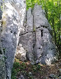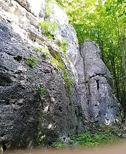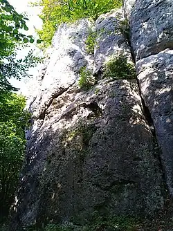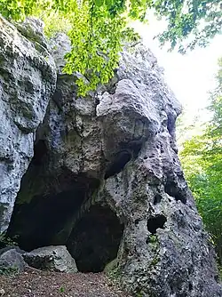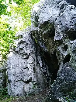 W skale Biały Murek znajduje się Schronisko Dolne w Górze Drugie[5].