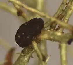 Grzyb naporostowy[5]. Występuje na różnych gatunkach brodaczek (Usnea) i na Protousnea dusenii[3].