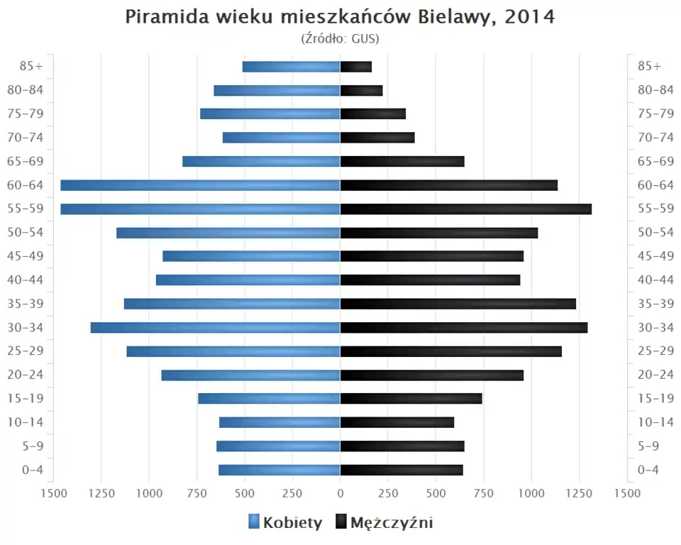 - ↑ Bielawa w liczbach [online], Polska w liczbach [dostęp 2016-01-06], liczba ludności na podstawie danych GUS.