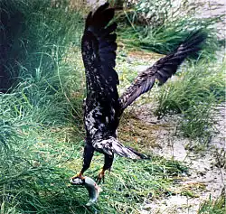 - ↑ MacDonald, J. Bald Eagle attacks adult Osprey. „Journal of Raptor Research”. 28 (2), s. 122, 1994. (ang.).