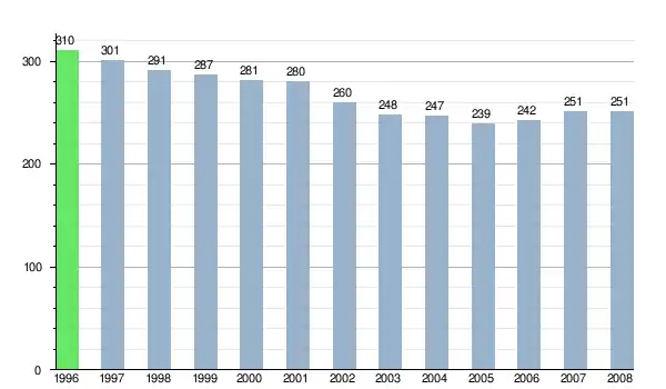 Zmiany liczby ludności w miejscowości Bielovce od 1996 roku[8].
