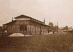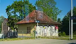 Pierwotny budynek stacyjny zbudowany był z muru pruskiego, ale został rozebrany w latach 80. XX wieku, ponieważ groził katastrofą budowlaną.