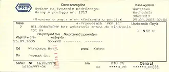 - ↑ Pojęcie sprzedaż użyte zostało tutaj w rozumieniu potocznym; w sensie prawnym to nie bilet jest przedmiotem sprzedaży, a prawo, którego bilet jest potwierdzeniem.